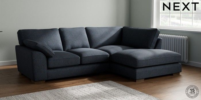 7.3.1 Buy Stamford Grand Relaxed Sit Medium Corner Chaise - Right Hand Tweedy Chenille Navy Blue Large Square Angle - Mid from the Next UK online shop Click here to use our accessible website