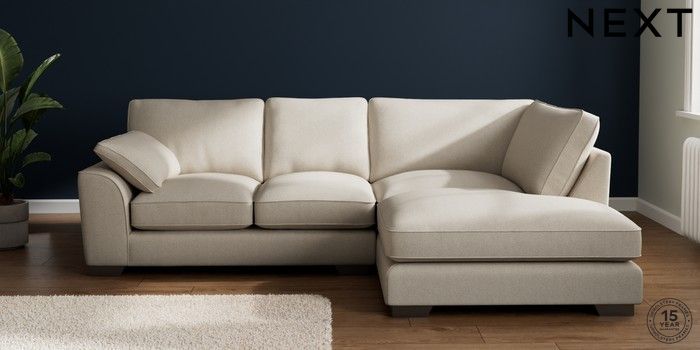 7.3.1 Buy Stamford Grand Relaxed Sit Medium Corner Chaise - Right Hand Tweedy Chenille Oyster Large Square Angle - Gunmetal from the Next UK online shop Click here to use our accessible website