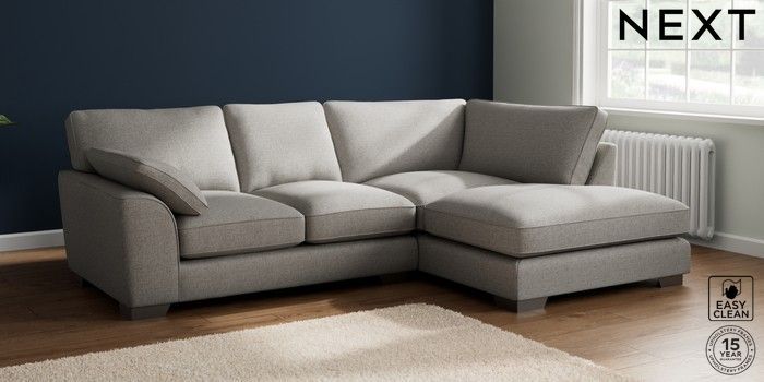 7.3.1 Buy Stamford Grand Relaxed Sit Medium Corner Chaise - Right Hand Woven Chenille Easy Clean Light Grey Large Square Angle - Gunmetal from the Next UK online shop Click here to use our accessible website