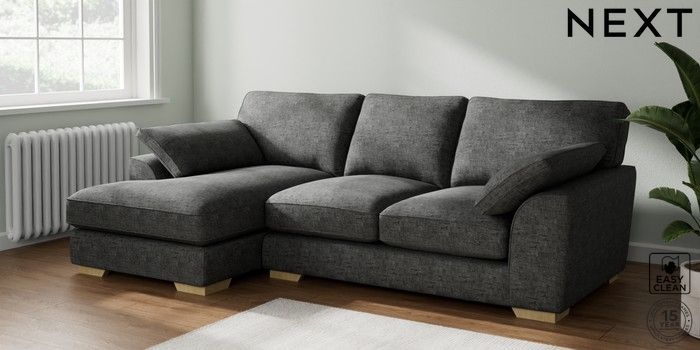 7.3.1 Buy Stamford Grand Relaxed Sit Medium Sofa Chaise - Left Hand Boucle Weave Easy Clean Charcoal Grey Large Square Angle - Light from the Next UK online shop Click here to use our accessible website