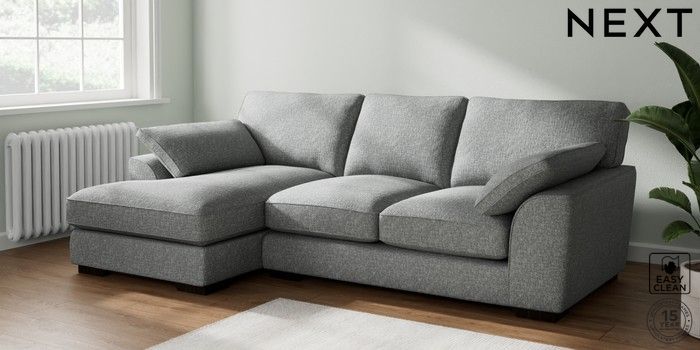 7.2.10 Buy Stamford Grand Relaxed Sit Medium Sofa Chaise - Left Hand Chunky Boucle Easy Clean Mid Grey Large Square Angle - Dark from the Next UK online shop Click here to use our accessible website