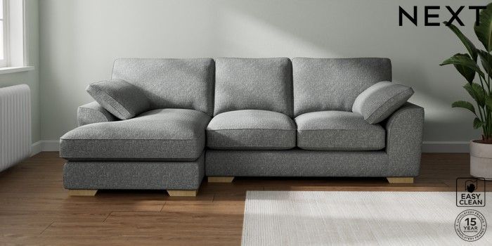 7.3.1 Buy Stamford Grand Relaxed Sit Medium Sofa Chaise - Left Hand Chunky Boucle Easy Clean Mid Grey Large Square Angle - Light from the Next UK online shop