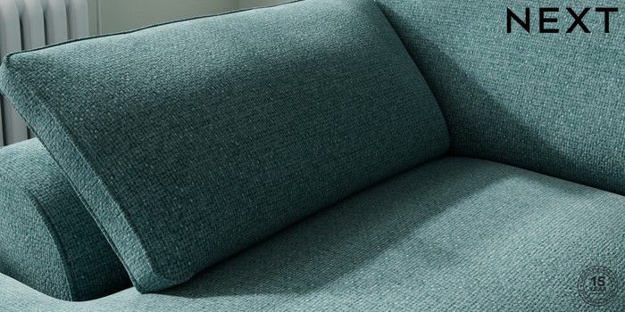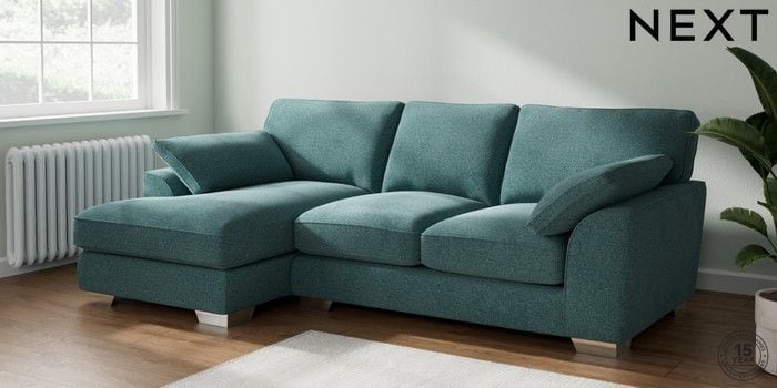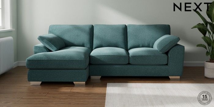 7.3.1 Buy Stamford Grand Relaxed Sit Medium Sofa Chaise - Left Hand Chunky Chenille Mid Teal Green Large Square Angle - Chrome Metal from the Next UK online shop Click here to use our accessible website