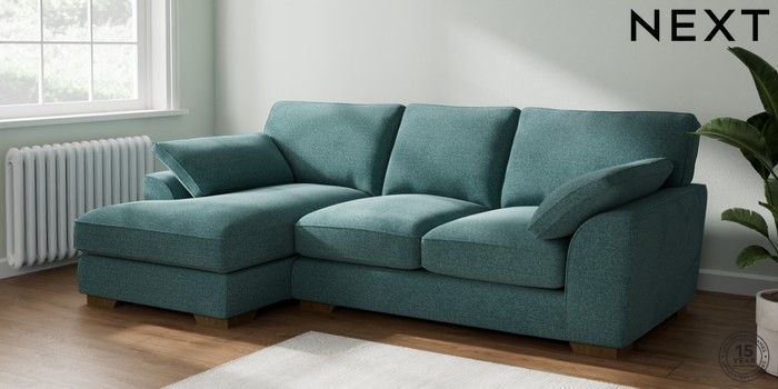 7.2.10 Buy Stamford Grand Relaxed Sit Medium Sofa Chaise - Left Hand Chunky Chenille Mid Teal Green Large Square Angle - Mid from the Next UK online shop Click here to use our accessible website