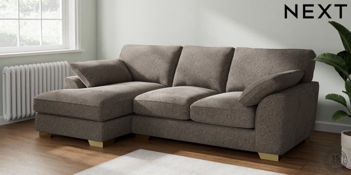 7.2.10 Buy Stamford Grand Relaxed Sit Medium Sofa Chaise - Left Hand Chunky Chenille Mink Brown Large Square Angle - Brushed Brass from the Next UK online shop Click here to use our accessible website