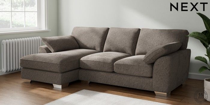 7.3.1 Buy Stamford Grand Relaxed Sit Medium Sofa Chaise - Left Hand Chunky Chenille Mink Brown Large Square Angle - Chrome Metal from the Next UK online shop Click here to use our accessible website