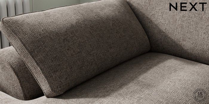 7.3.1 Buy Stamford Grand Relaxed Sit Medium Sofa Chaise - Left Hand Chunky Chenille Mink Brown Large Square Angle - Gunmetal from the Next UK online shop Click here to use our accessible website