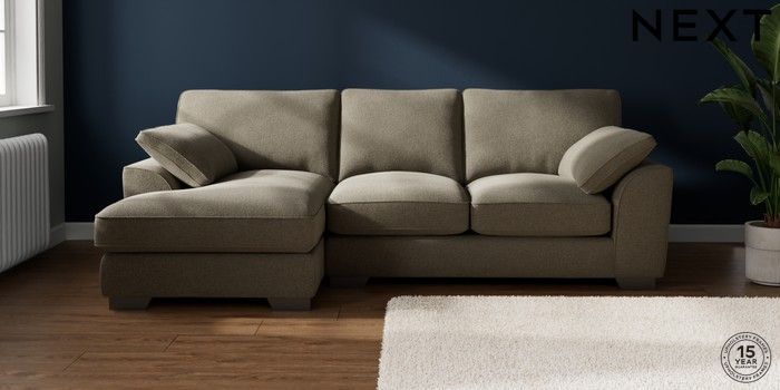 7.3.1 Buy Stamford Grand Relaxed Sit Medium Sofa Chaise - Left Hand Chunky Marl Light Olive Green Large Square Angle - Gunmetal from the Next UK online shop Click here to use our accessible website