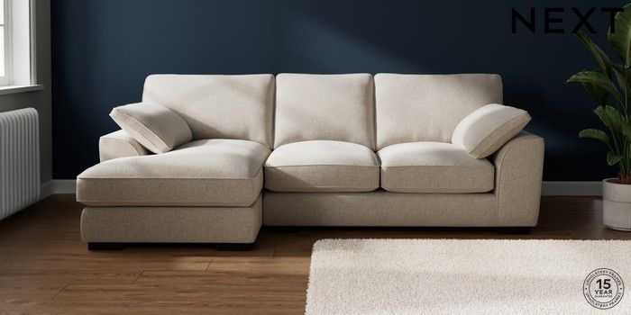 7.3.1 Buy Stamford Grand Relaxed Sit Medium Sofa Chaise - Left Hand Chunky Marl Oyster Large Square Angle - Dark from the Next UK online shop