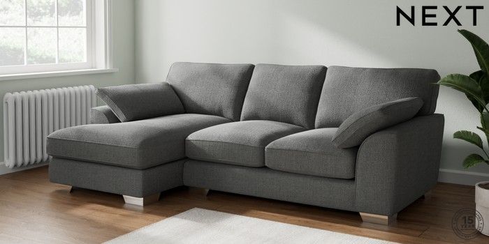 7.2.10 Buy Stamford Grand Relaxed Sit Medium Sofa Chaise - Left Hand Chunky Texture Dark Grey Large Square Angle - Chrome Metal from the Next UK online shop Click here to use our accessible website