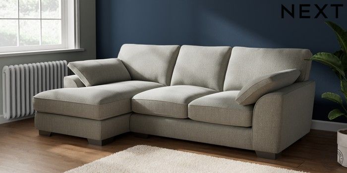 7.2.10 Buy Stamford Grand Relaxed Sit Medium Sofa Chaise - Left Hand Chunky Texture Dove Large Square Angle - Gunmetal from the Next UK online shop Click here to use our accessible website