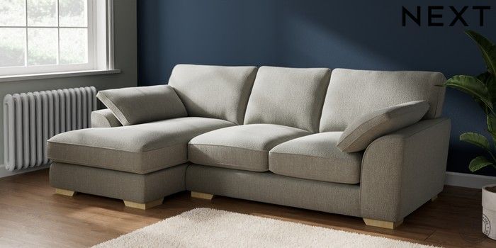 7.2.10 Buy Stamford Grand Relaxed Sit Medium Sofa Chaise - Left Hand Chunky Texture Dove Large Square Angle - Light from the Next UK online shop Click here to use our accessible website
