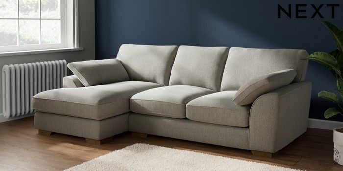 7.2.10 Buy Stamford Grand Relaxed Sit Medium Sofa Chaise - Left Hand Chunky Texture Dove Large Square Angle - Mid from the Next UK online shop Click here to use our accessible website