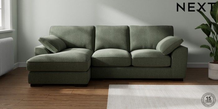 7.3.1 Buy Stamford Grand Relaxed Sit Medium Sofa Chaise - Left Hand Chunky Texture Mid Forest Green Large Square Angle - Dark from the Next UK online shop