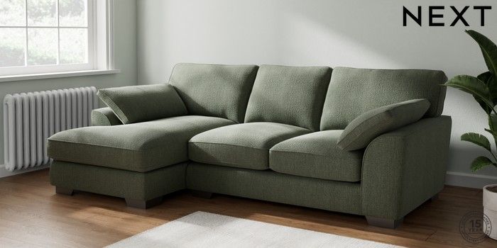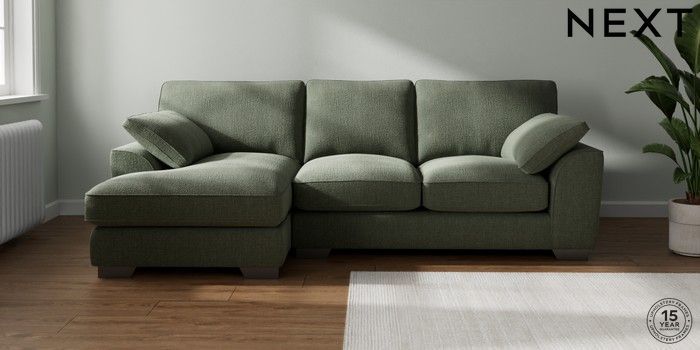 7.3.1 Buy Stamford Grand Relaxed Sit Medium Sofa Chaise - Left Hand Chunky Texture Mid Forest Green Large Square Angle - Gunmetal from the Next UK online shop Click here to use our accessible website