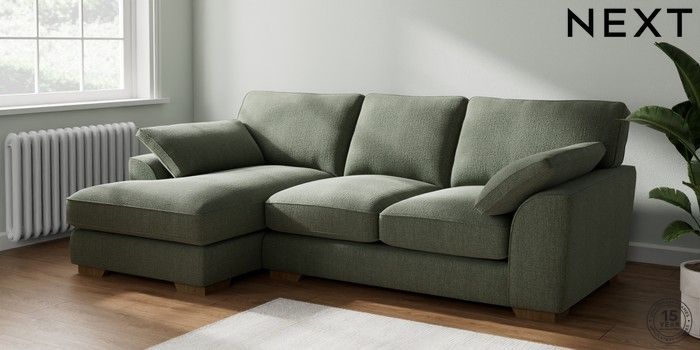 7.2.10 Buy Stamford Grand Relaxed Sit Medium Sofa Chaise - Left Hand Chunky Texture Mid Forest Green Large Square Angle - Mid from the Next UK online shop Click here to use our accessible website