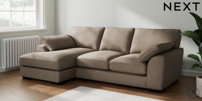 7.2.10 Buy Stamford Grand Relaxed Sit Medium Sofa Chaise - Left Hand Chunky Weave Dark Natural Large Square Angle - Dark from the Next UK online shop Click here to use our accessible website