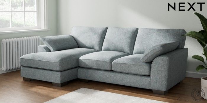 7.3.1 Buy Stamford Grand Relaxed Sit Medium Sofa Chaise - Left Hand Chunky Weave Mid Blue Large Square Angle - Gunmetal from the Next UK online shop Click here to use our accessible website