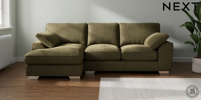 7.3.1 Buy Stamford Grand Relaxed Sit Medium Sofa Chaise - Left Hand Cotswold Chenille Dark Green Large Square Angle - Chrome Metal from the Next UK online shop Click here to use our accessible website