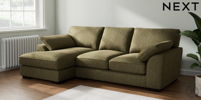 7.2.10 Buy Stamford Grand Relaxed Sit Medium Sofa Chaise - Left Hand Cotswold Chenille Dark Green Large Square Angle - Dark from the Next UK online shop Click here to use our accessible website