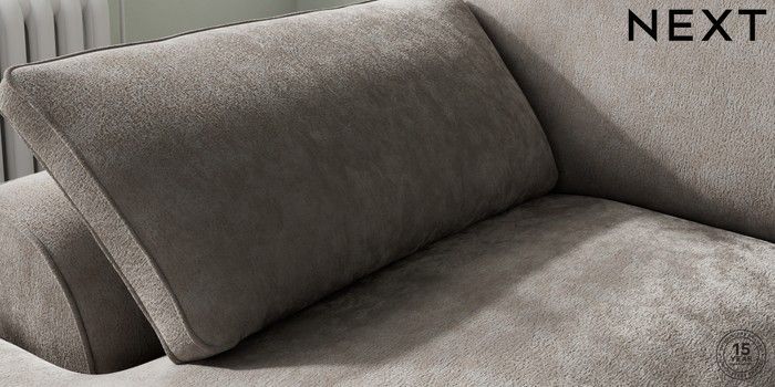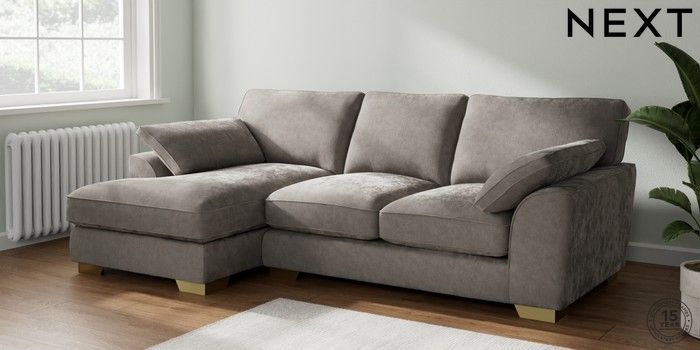 7.3.1 Buy Stamford Grand Relaxed Sit Medium Sofa Chaise - Left Hand Distressed Velour French Grey Large Square Angle - Brushed Brass from the Next UK online shop Click here to use our accessible website