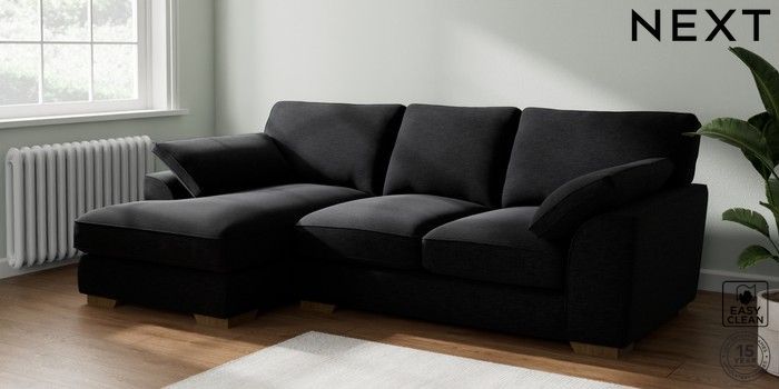 7.2.10 Buy Stamford Grand Relaxed Sit Medium Sofa Chaise - Left Hand Fine Chenille Easy Clean Black Large Square Angle - Mid from the Next UK online shop Click here to use our accessible website
