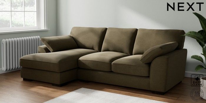 7.2.10 Buy Stamford Grand Relaxed Sit Medium Sofa Chaise - Left Hand Fine Chenille Easy Clean Dark Moss Green Large Square Angle - Dark from the Next UK online shop Click here to use our accessible website