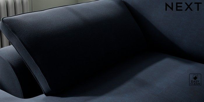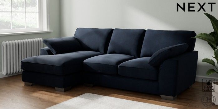 7.3.1 Buy Stamford Grand Relaxed Sit Medium Sofa Chaise - Left Hand Fine Chenille Easy Clean Dark Navy Blue Large Square Angle - Gunmetal from the Next UK online shop Click here to use our accessible website