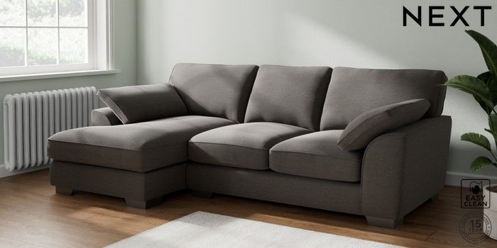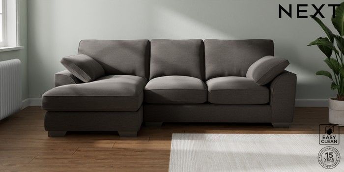 7.3.1 Buy Stamford Grand Relaxed Sit Medium Sofa Chaise - Left Hand Fine Chenille Easy Clean Dark Smoke Grey Large Square Angle - Gunmetal from the Next UK online shop Click here to use our accessible website