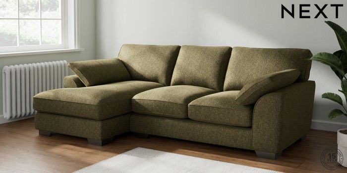7.3.1 Buy Stamford Grand Relaxed Sit Medium Sofa Chaise - Left Hand Cotswold Chenille Dark Green Large Square Angle - Gunmetal from the Next UK online shop Click here to use our accessible website