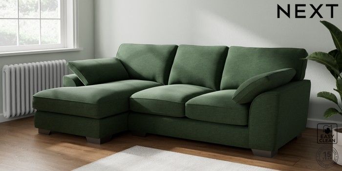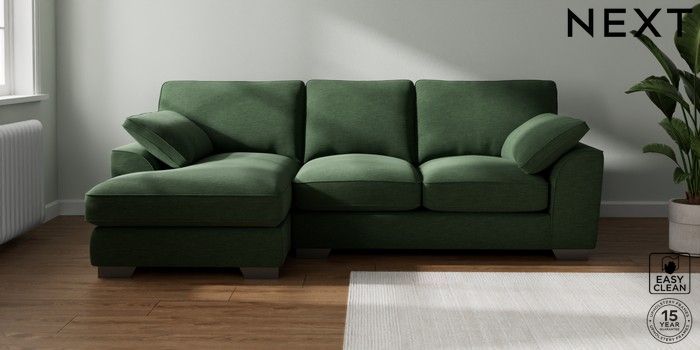 7.3.1 Buy Stamford Grand Relaxed Sit Medium Sofa Chaise - Left Hand Fine Chenille Easy Clean Mid Khaki Green Large Square Angle - Gunmetal from the Next UK online shop Click here to use our accessible website