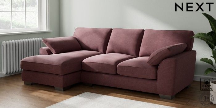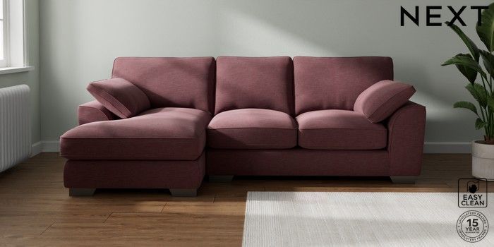 7.3.1 Buy Stamford Grand Relaxed Sit Medium Sofa Chaise - Left Hand Fine Chenille Easy Clean Mid Mulberry Purple Large Square Angle - Gunmetal from the Next UK online shop Click here to use our accessible website