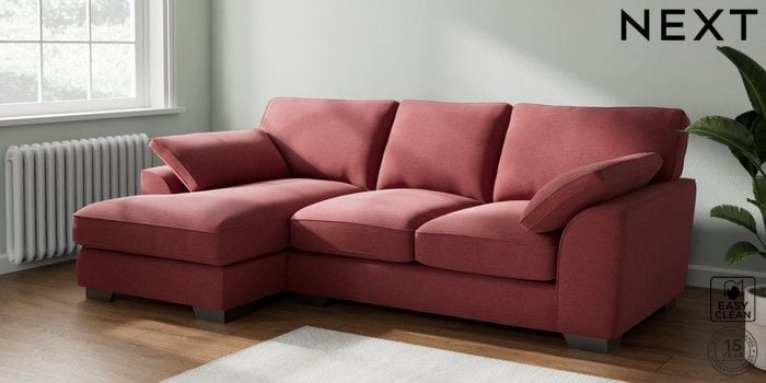 7.3.1 Buy Stamford Grand Relaxed Sit Medium Sofa Chaise - Left Hand Fine Chenille Easy Clean Mid Pink Large Square Angle - Gunmetal from the Next UK online shop Click here to use our accessible website