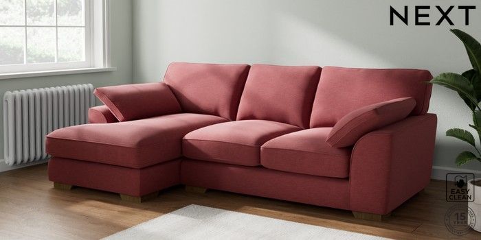 7.2.10 Buy Stamford Grand Relaxed Sit Medium Sofa Chaise - Left Hand Fine Chenille Easy Clean Mid Pink Large Square Angle - Mid from the Next UK online shop Click here to use our accessible website