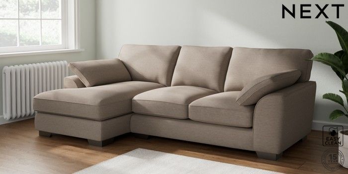 7.3.1 Buy Stamford Grand Relaxed Sit Medium Sofa Chaise - Left Hand Fine Chenille Easy Clean Mid Taupe Brown Large Square Angle - Gunmetal from the Next UK online shop Click here to use our accessible website