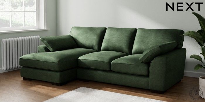 7.2.10 Buy Stamford Grand Relaxed Sit Medium Sofa Chaise - Left Hand Luxe Chenille Dark Green Large Square Angle - Dark from the Next UK online shop Click here to use our accessible website