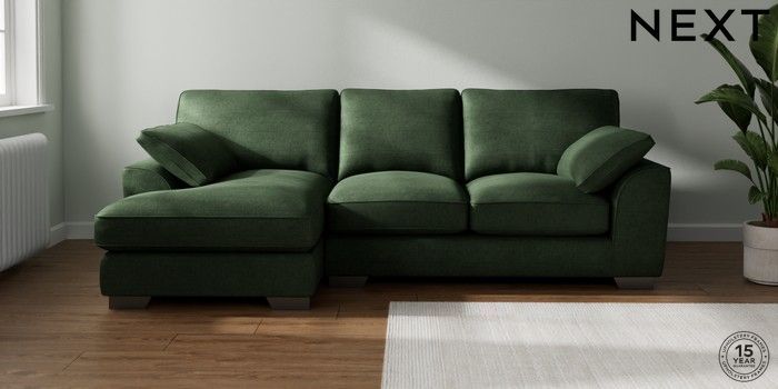 7.3.1 Buy Stamford Grand Relaxed Sit Medium Sofa Chaise - Left Hand Luxe Chenille Dark Green Large Square Angle - Gunmetal from the Next UK online shop Click here to use our accessible website