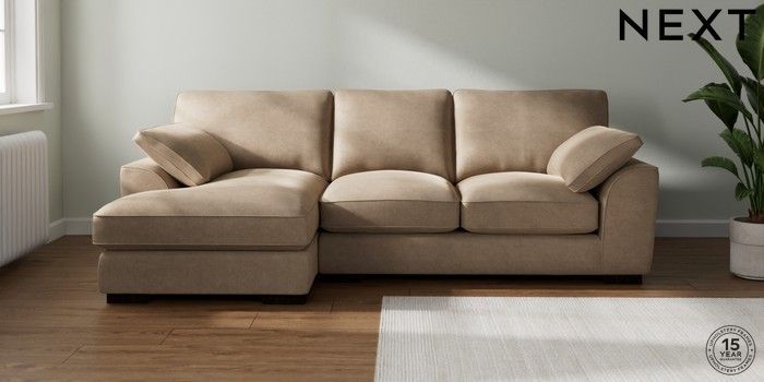 7.3.1 Buy Stamford Grand Relaxed Sit Medium Sofa Chaise - Left Hand Luxe Chenille Mid Camel Beige Large Square Angle - Dark from the Next UK online shop