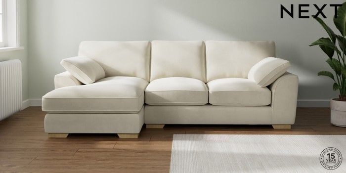 7.0.3 Buy Stamford Grand Relaxed Sit Medium Sofa Chaise - Left Hand Luxe Chenille Oyster Large Square Angle - Light from the Next UK online shop Click here to use our accessible website