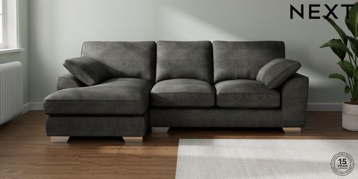 7.3.1 Buy Stamford Grand Relaxed Sit Medium Sofa Chaise - Left Hand Monza Faux Leather Easy Clean Dark Grey Large Square Angle - Chrome Metal from the Next UK online shop Click here to use our accessible website