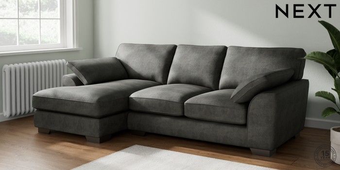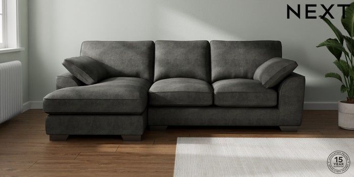 7.3.1 Buy Stamford Grand Relaxed Sit Medium Sofa Chaise - Left Hand Monza Faux Leather Easy Clean Dark Grey Large Square Angle - Gunmetal from the Next UK online shop Click here to use our accessible website