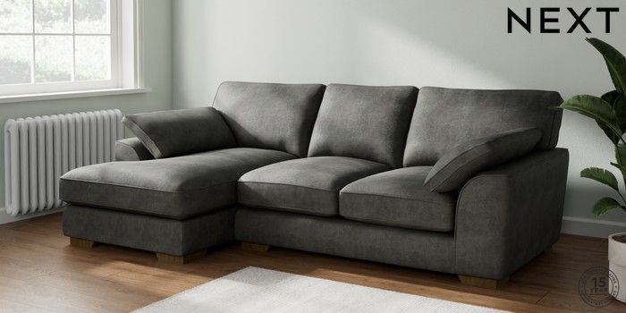 7.3.1 Buy Stamford Grand Relaxed Sit Medium Sofa Chaise - Left Hand Monza Faux Leather Easy Clean Dark Grey Large Square Angle - Mid from the Next UK online shop Click here to use our accessible website