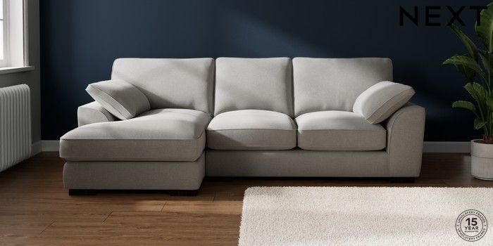 7.3.1 Buy Stamford Grand Relaxed Sit Medium Sofa Chaise - Left Hand Natural Mix Light Grey Large Square Angle - Dark from the Next UK online shop