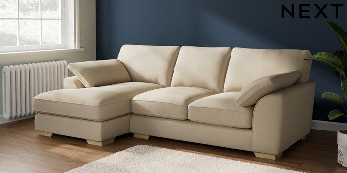 7.2.10 Buy Stamford Grand Relaxed Sit Medium Sofa Chaise - Left Hand Natural Mix Light Natural Large Square Angle - Light from the Next UK online shop Click here to use our accessible website