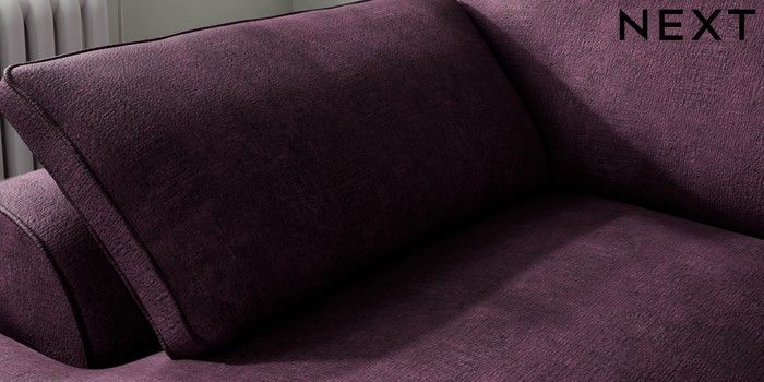 7.3.1 Buy Stamford Grand Relaxed Sit Medium Sofa Chaise - Left Hand Plush Chenille Dark Plum Purple Large Square Angle - Brushed Brass from the Next UK online shop Click here to use our accessible website