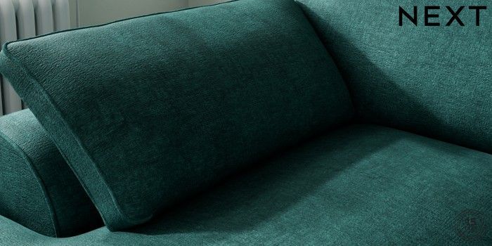 7.3.1 Buy Stamford Grand Relaxed Sit Medium Sofa Chaise - Left Hand Plush Chenille Dark Teal Green Large Square Angle - Chrome Metal from the Next UK online shop Click here to use our accessible website
