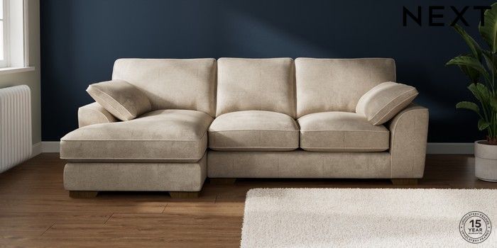 7.3.1 Buy Stamford Grand Relaxed Sit Medium Sofa Chaise - Left Hand Plush Chenille Light Natural Large Square Angle - Mid from the Next UK online shop