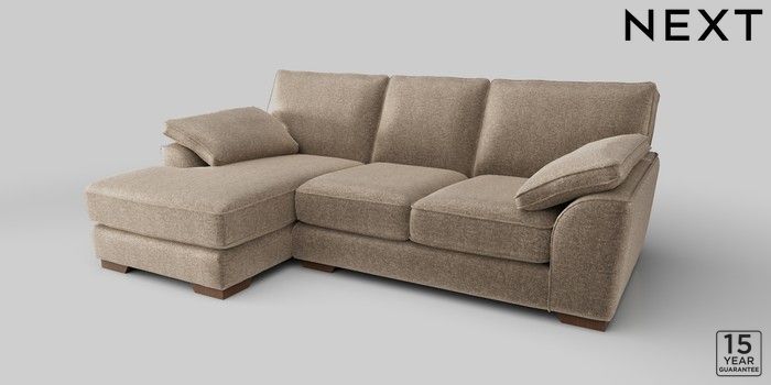 6.12.1 Buy Stamford Grand Relaxed Sit Medium Sofa Chaise - Left Hand Plush Chenille Mid Natural Large Square Angle - Mid from the Next UK online shop Click here to use our accessible website