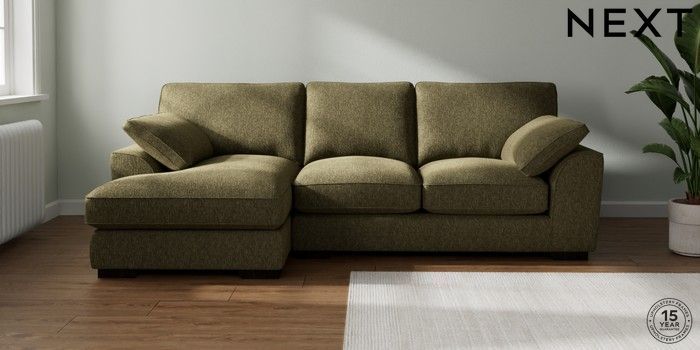 7.3.1 Buy Stamford Grand Relaxed Sit Medium Sofa Chaise - Left Hand Cotswold Chenille Dark Green Large Square Angle - Dark from the Next UK online shop Click here to use our accessible website