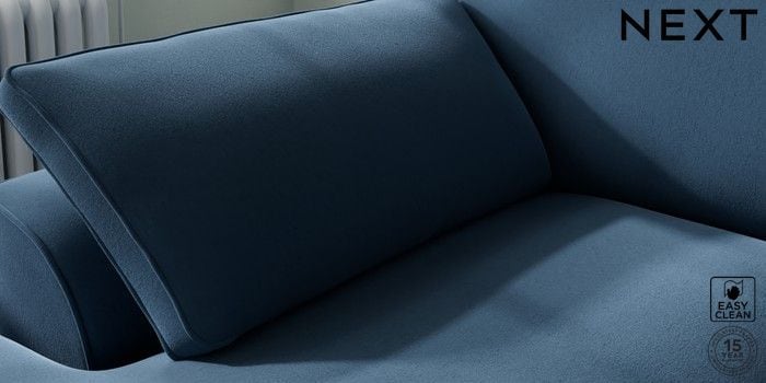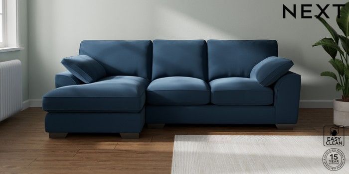 7.3.1 Buy Stamford Grand Relaxed Sit Medium Sofa Chaise - Left Hand Plush Velvet Easy Clean Airforce Blue Large Square Angle - Gunmetal from the Next UK online shop Click here to use our accessible website